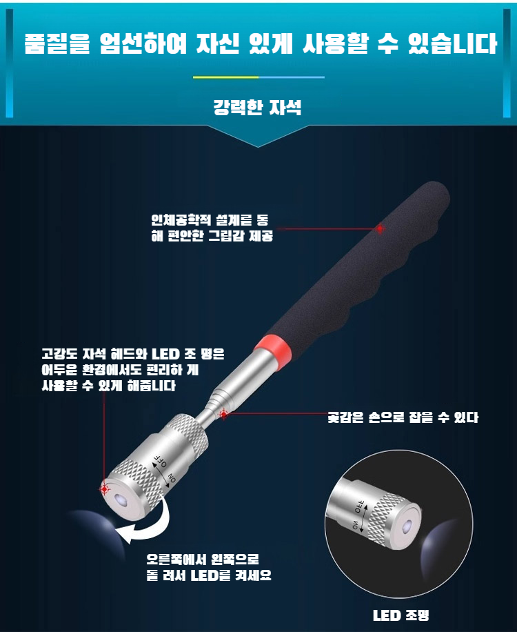신축 자석 픽업 레드 라이트 포함 강력 자석 금속 흡인봉 공구 부품 자석 픽업 흡인봉
