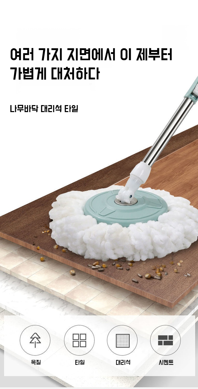 게으름뱅이 밀대통으로 손쉽게 청소하는 모습